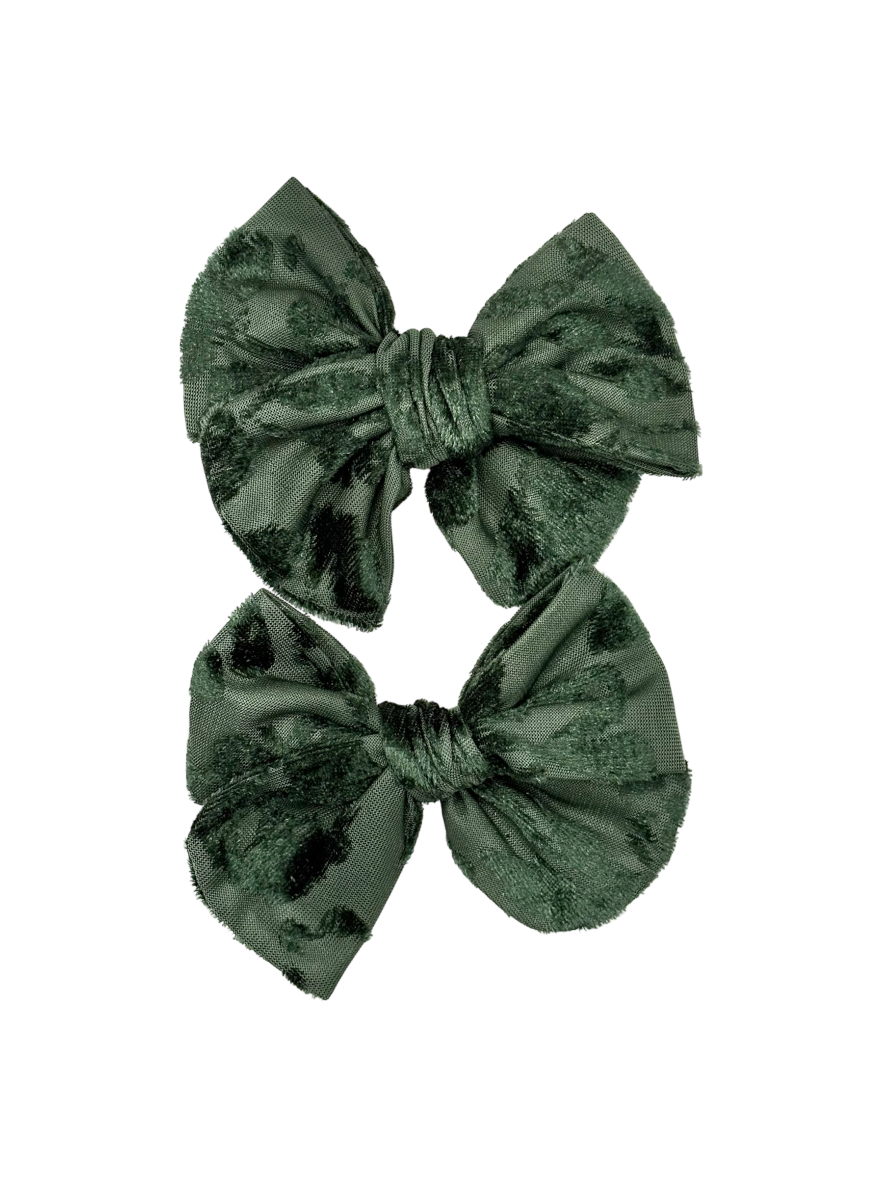 Par de moños flores Velvet verde olivo